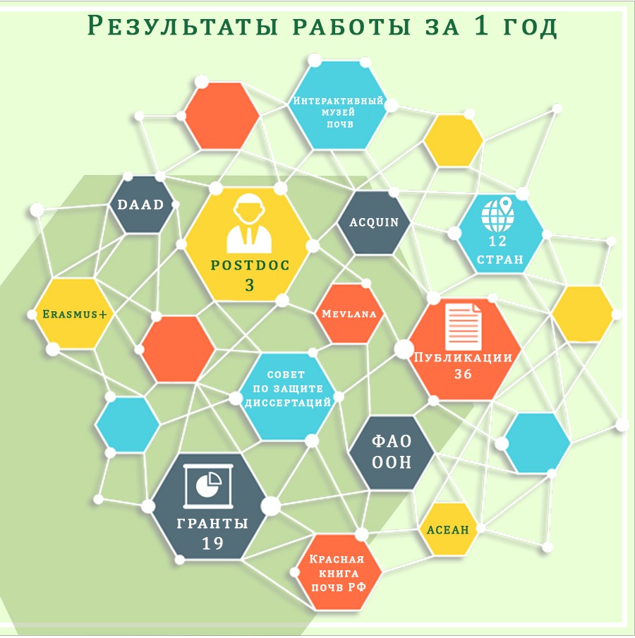 1 год – много это или мало?.. Это не важно, важен результат, и он есть! Мы движемся вперед, развиваемся, еще в 2015 году наше направление было признано на международном уровне, и мы продолжаем, количество стран по международному сотрудничеству с кафедрой в этом году выросло до 12-ти. Проводятся исследования в глобальном почвенном партнерстве с ФАО ООН. В этом году был выигран грант Эразмус мундус по реализации…